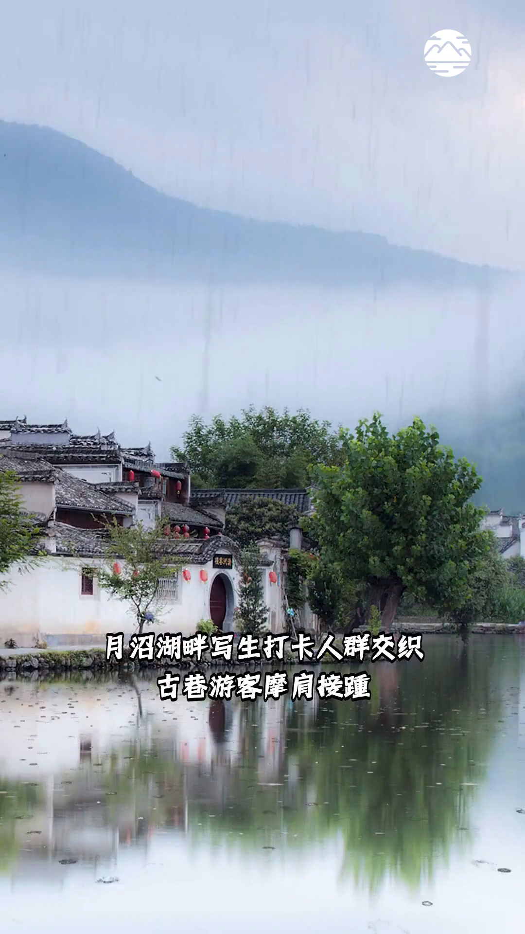 宏村 月沼湖畔写生打卡人群交织古巷游客摩肩接踵