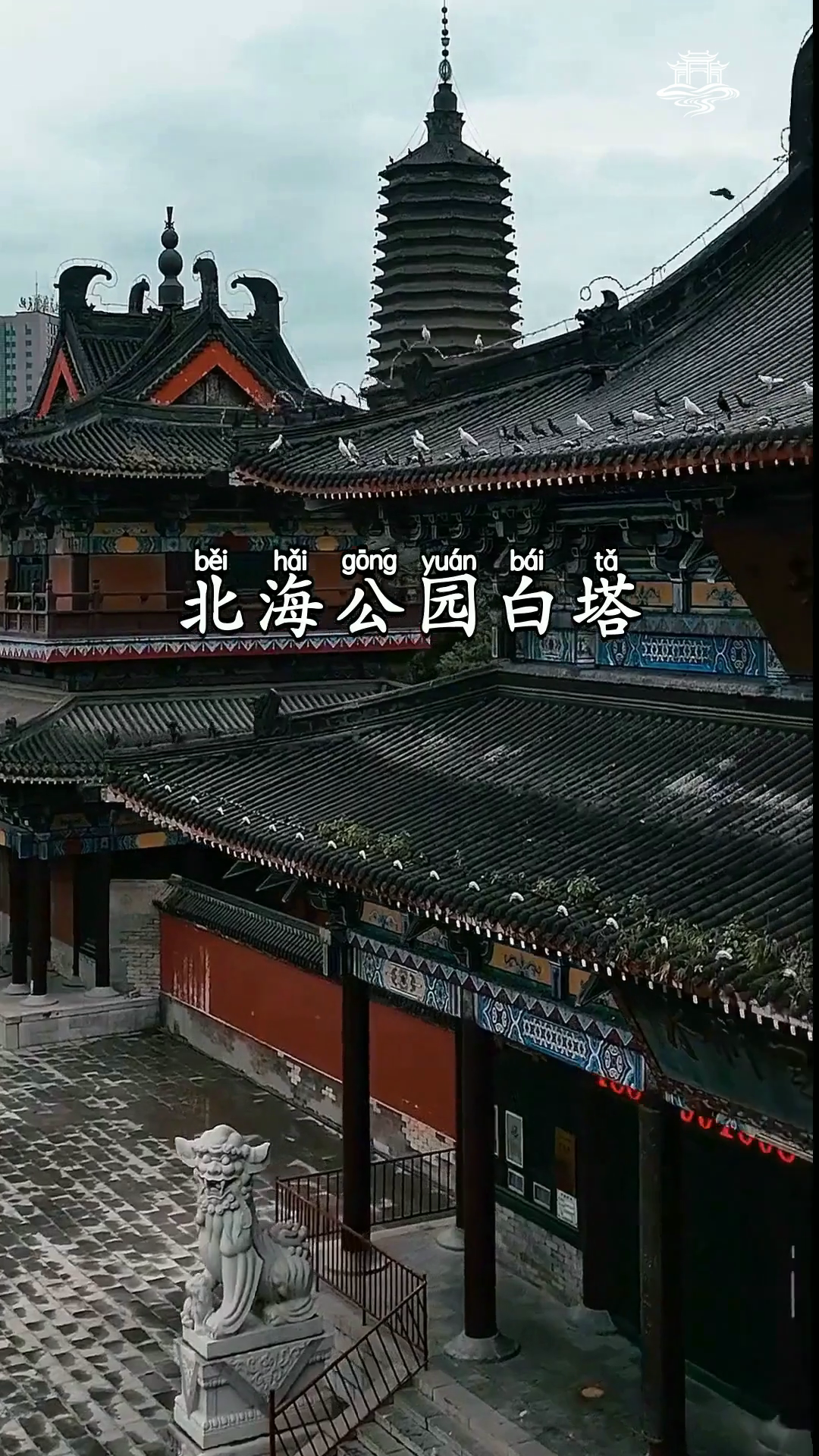 北海公园白塔 蓝天白云下白塔矗立尽显古朴仙韵